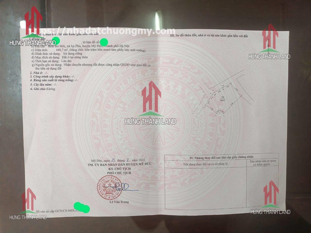 Bất Động Sản Hưng Thành Land bán lô đất 448,7m² An Phú _ Mỹ Đức _ Hà Nội